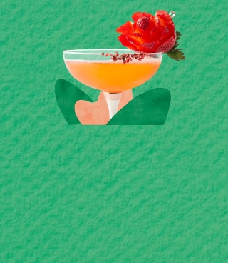 Décorez notre cocktail April in Paris d’une rosette de fraise et de grains de poivre rose.